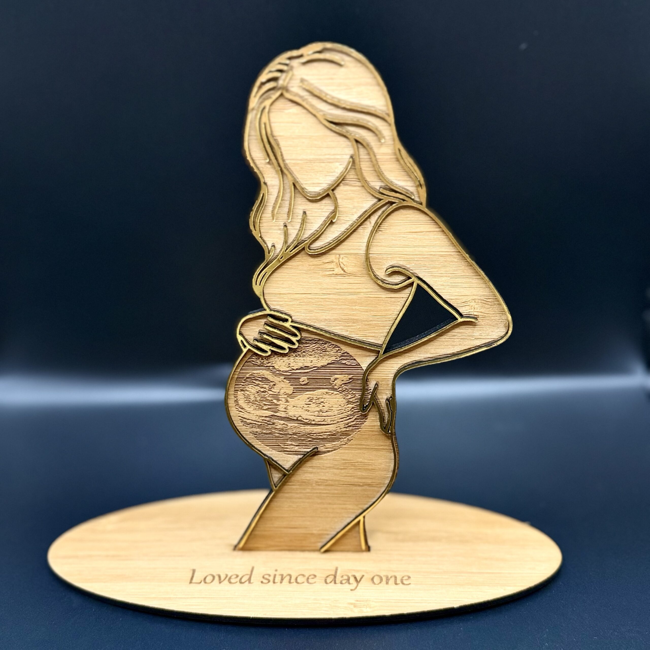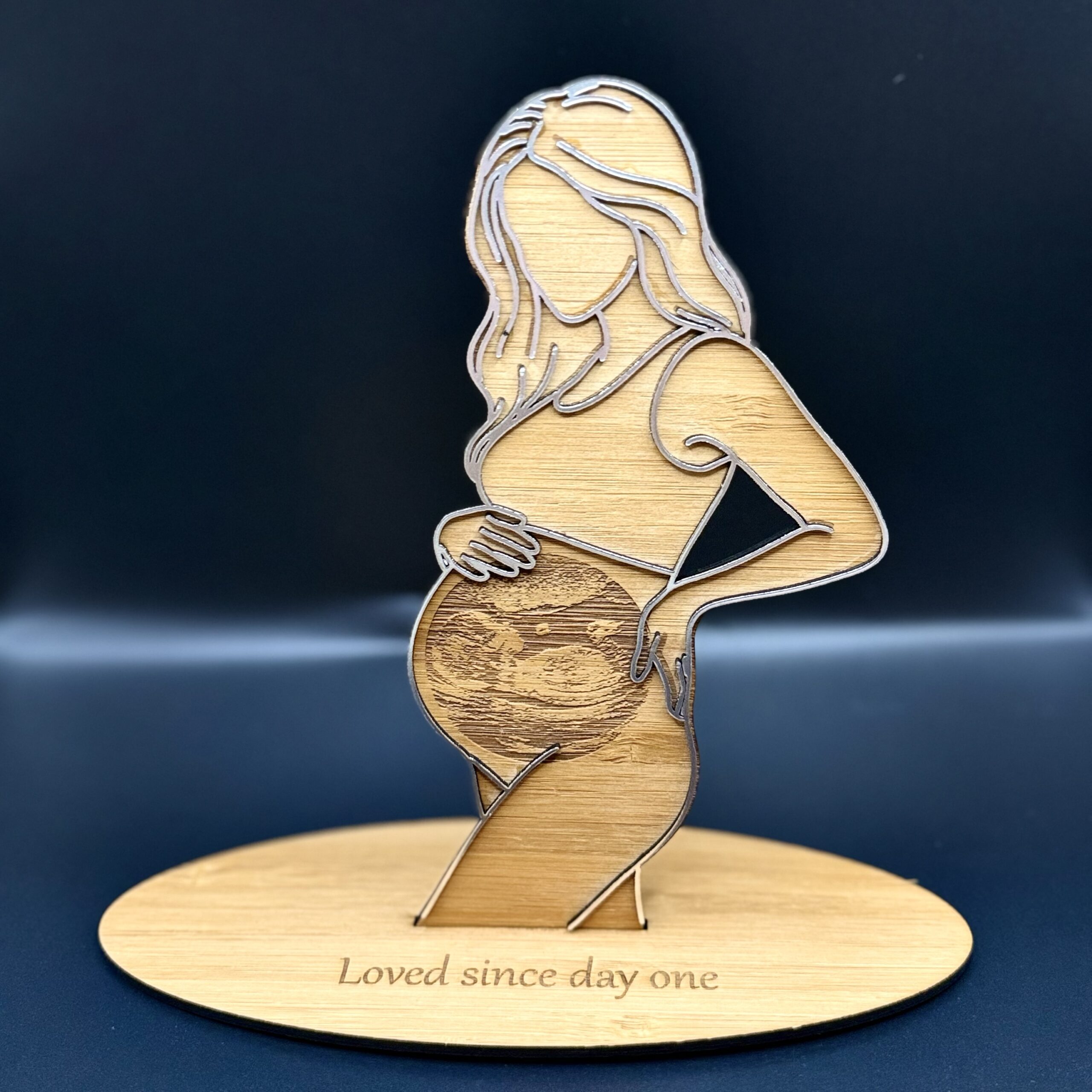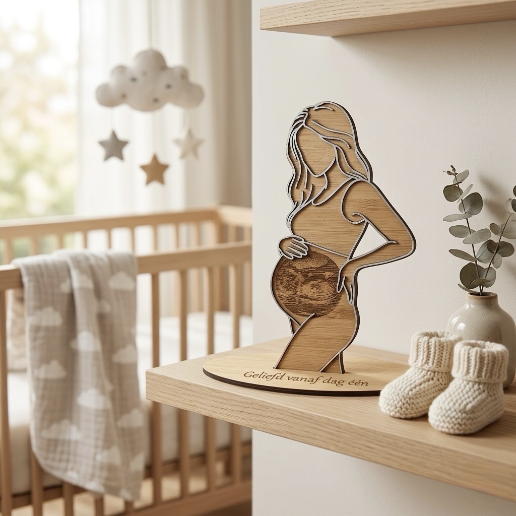 - Jullie eigen echofoto:Â Wij graveren de echofoto van jullie kindje direct in de buik van het silhouette. Een uniek detail dat dit beeldje 100% persoonlijk maakt.