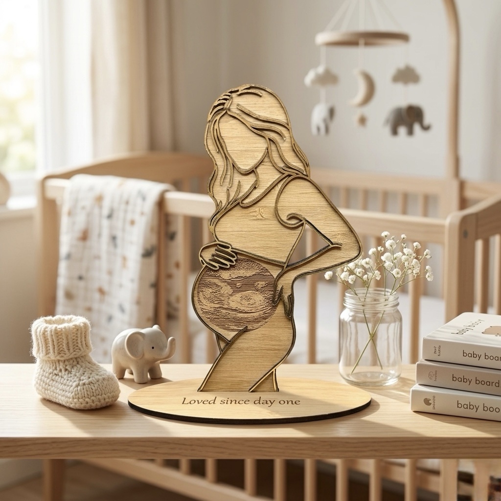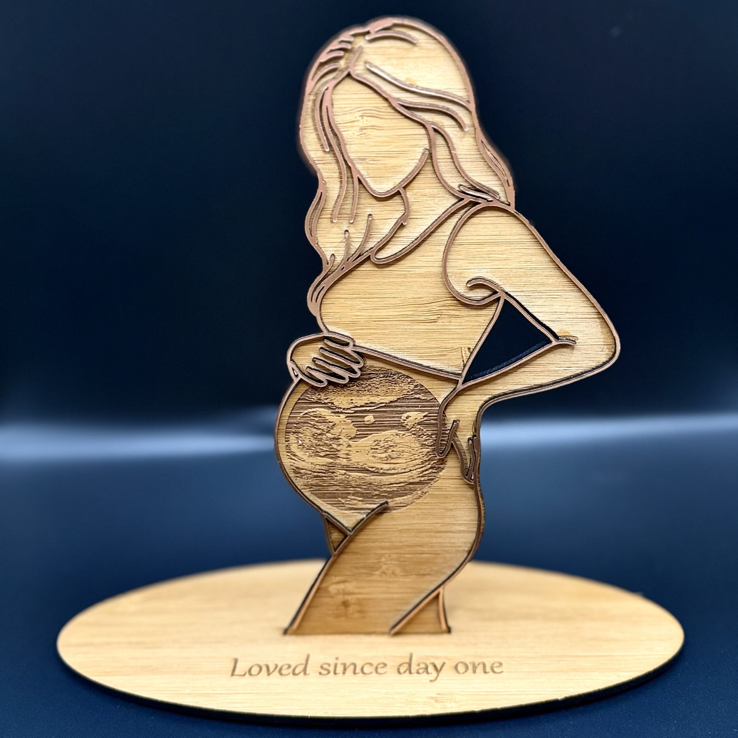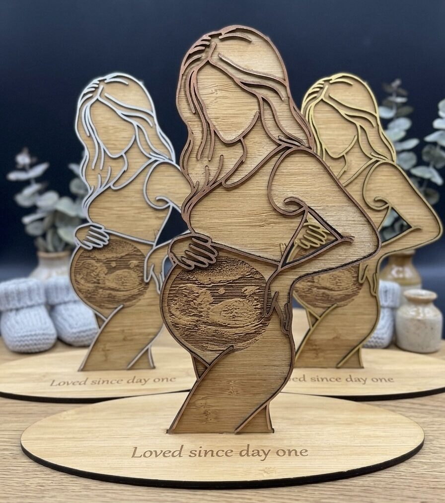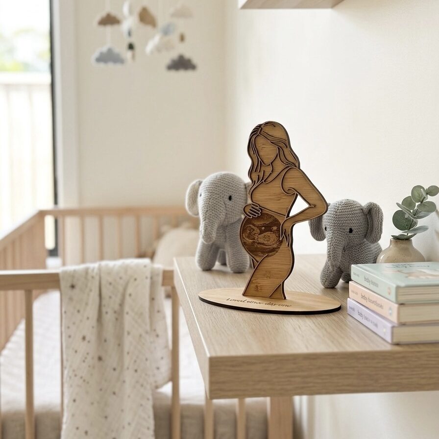 - Jullie eigen echofoto:Â Wij graveren de echofoto van jullie kindje direct in de buik van het silhouette. Een uniek detail dat dit beeldje 100% persoonlijk maakt.